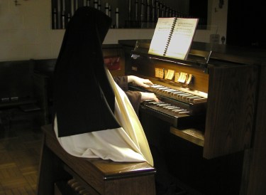 Prayer is the heart of Carmelite life, and the chapel is the heart of a Carmelite monastery. The nuns adore Jesus present in the Holy Eucharist as the summit and source of our entire consecrated life during the two hours of mental prayer, the Divine Office, Rosary and other exercises of piety each day. In Carmel, the sacred liturgy is characterized by simplicity to allow more time for private prayer in accord with our hermit spirit. The Divine Office is usually recited on one tone, with Gregorian chant reserved for Sundays and feast days.