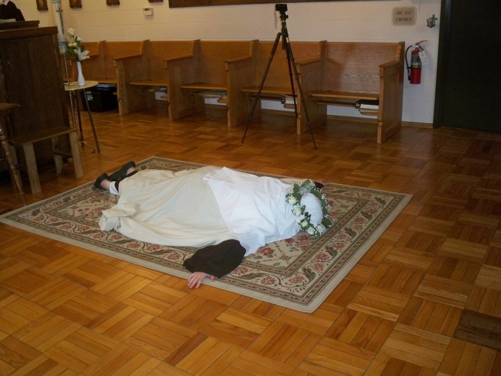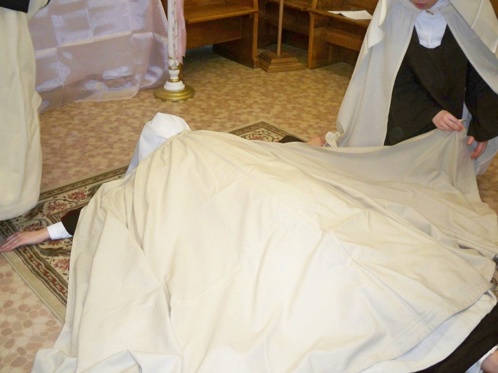 The Sisters lay prostrate in the form of a Cross as a sign of their dedication.