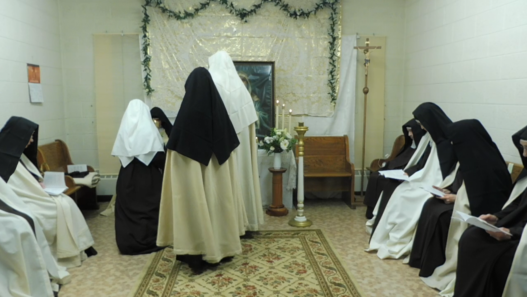 The postulants wore wedding dresses at the beginning of their Clothing ceremonies.
