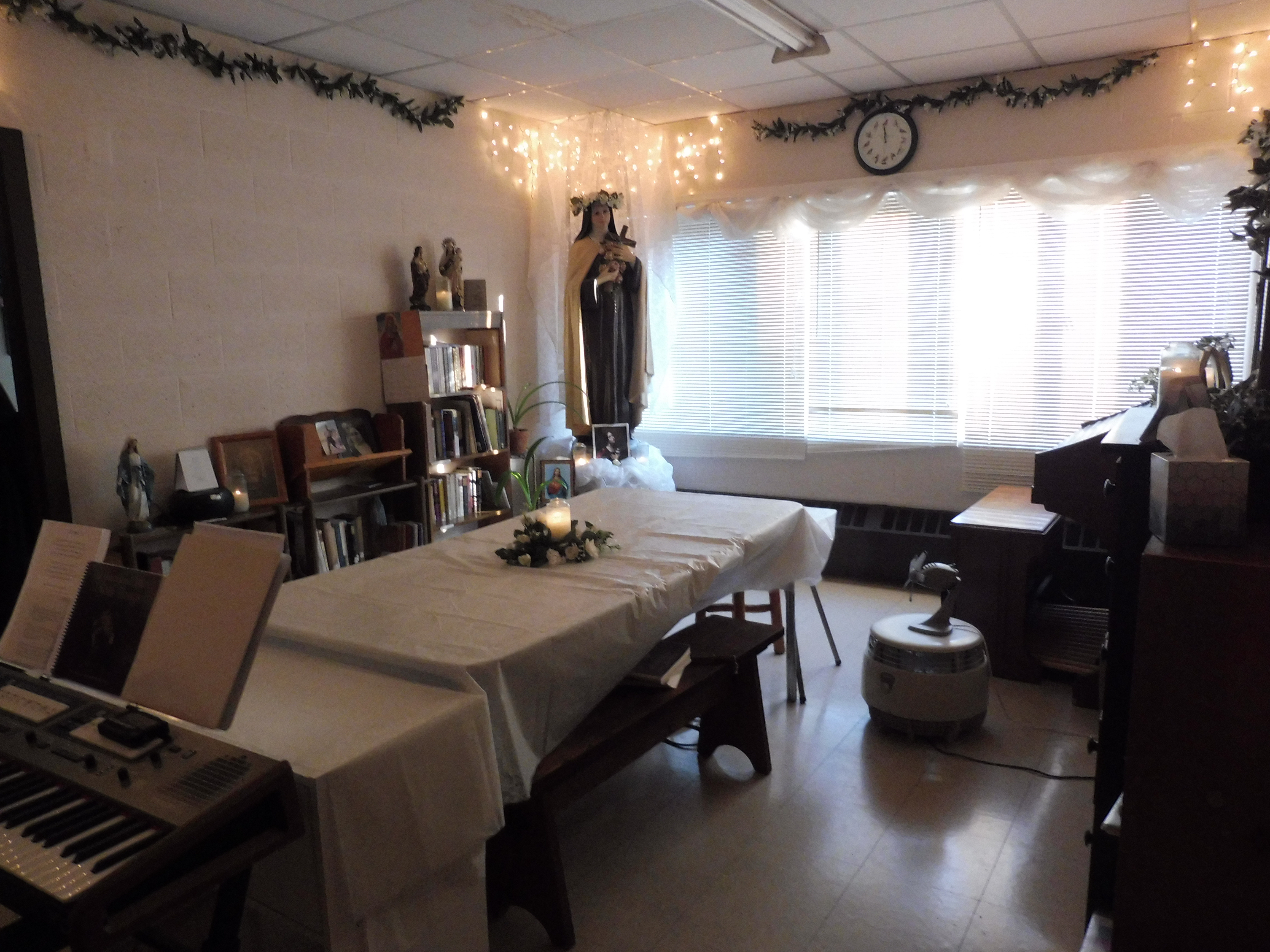 The novitiate recreation room decorated for our senior novice’s farewell party.